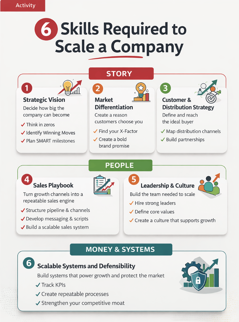 It also features practical exercises from Dan Larson of The Sales Playbook and Patrick Thean of Rhythm Systems, bringing proven sales and execution frameworks directly into the scaling process.
